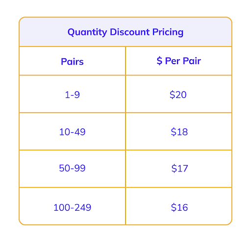Orders of 250 or more pairs may be eligible for additional bulk discounts. Request more information below.